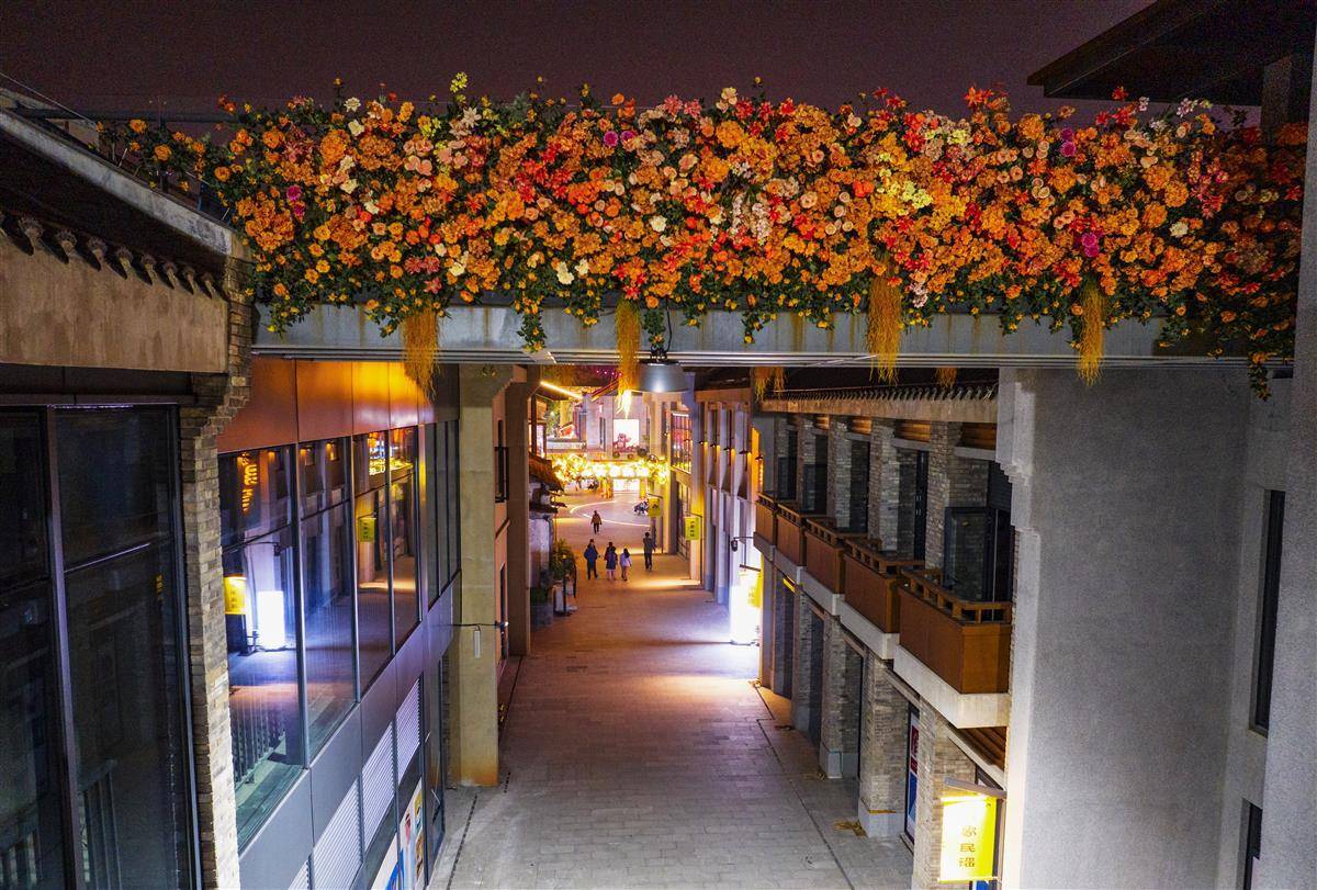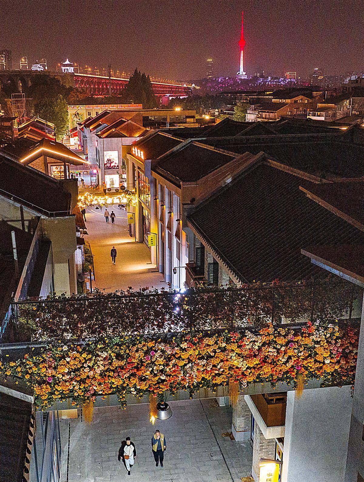 11月3日,位于武漢市武昌古城核心區(qū)域的斗級(jí)營二期,一座正在施工中的廊橋橋身上長系滿了繁花,站在橋上的游人,可以與黃鶴樓或長江大橋同框,成為武昌古城一處浪漫的打卡地。目前,斗級(jí)營二期已試運(yùn)營,修繕后的建筑立面延續(xù)了古韻特色,打造的小微景觀融入了現(xiàn)代元素,實(shí)現(xiàn)了這片區(qū)域的“美顏升級(jí)”。(湖北日?qǐng)?bào)全媒記者 朱熙勇 攝)