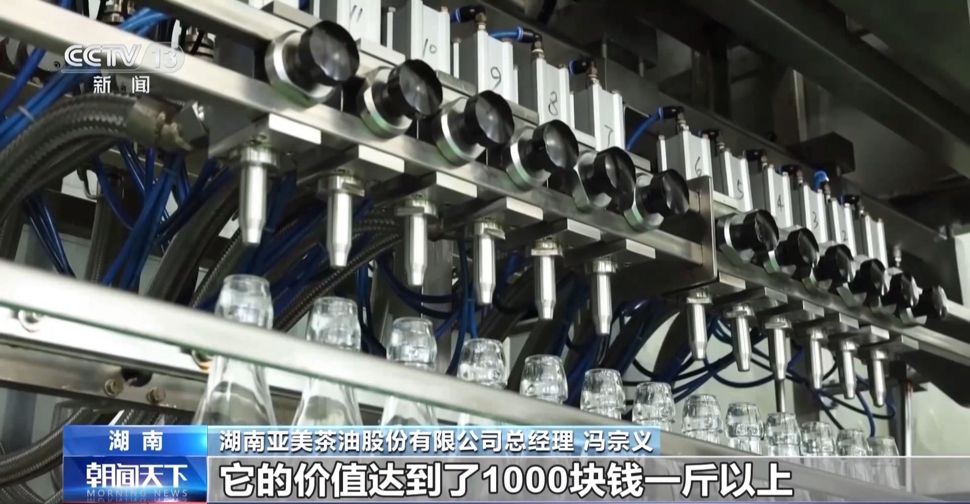 湖南亞美茶油股份有限公司總經理 馮宗義:茶油精油護膚品達到醫用護膚級,原來茶油的價值是80至100塊錢一斤,通過提純得到的衍生品,它的價值達到了1000塊錢一斤以上,那它的附加值就在原來的基礎上提高了10倍以上。