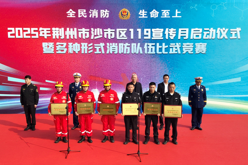 硝煙尚未散盡,2025年沙市區(qū)消防宣傳月啟動儀式緊接著拉開帷幕。沙市區(qū)副區(qū)長、區(qū)公安分局局長張勁松在致辭中表示:“消防安全沒有終點,只有連續(xù)不斷的新起點。全區(qū)上下要始終樹牢‘人民至上、生命至上’理念,把對消防的重視轉(zhuǎn)化為實際行動,把對安全的追求融入日常生活,共同守護我們的家園。”儀式上正式發(fā)布了《沙市區(qū)2025年度消防宣傳月活動實施方案》,為接下來一個月內(nèi)形式多樣、內(nèi)容豐富的消防安全宣傳活動描繪了清晰藍圖,并宣讀了《全區(qū)專職消防隊伍比武競賽的通報》與《關于表彰2025年全區(qū)消防工作先進基層工作者的決定》,對競賽優(yōu)勝團體、貢獻突出個人進行了表彰。
