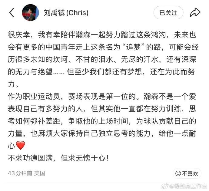 11月5日,楊瀚森工作室發(fā)文回應(yīng)近期爭(zhēng)議: