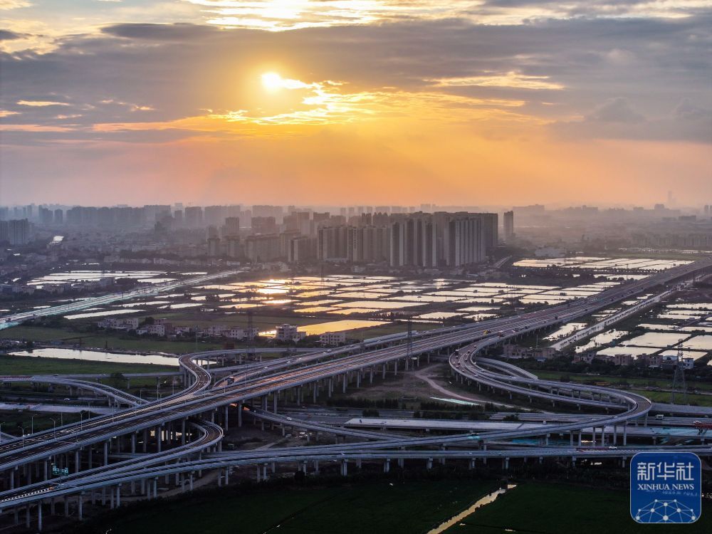 ↑沐浴在落日余暉里的南中高速新隆互通(2024年10月17日攝,無人機照片)。南中高速橫跨廣州、中山兩市,南通珠海、西進江門、東達深圳,串聯起粵港澳大灣區核心區域東西南北大通道。通車后從廣州南沙15分鐘可至中山城區,20分鐘可達深圳寶安。新華社記者 劉大偉 攝