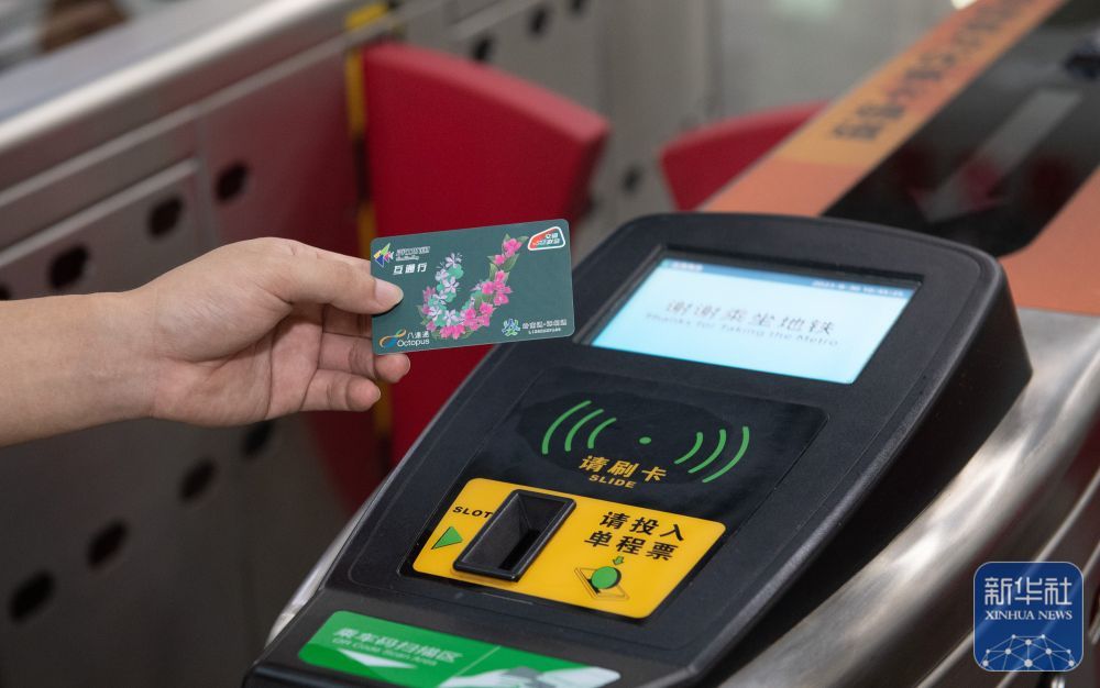 ↑在深圳福田站地鐵閘機出口,用戶持深港互通行卡準備刷卡(2023年8月30日攝)。新華社記者 毛思倩 攝