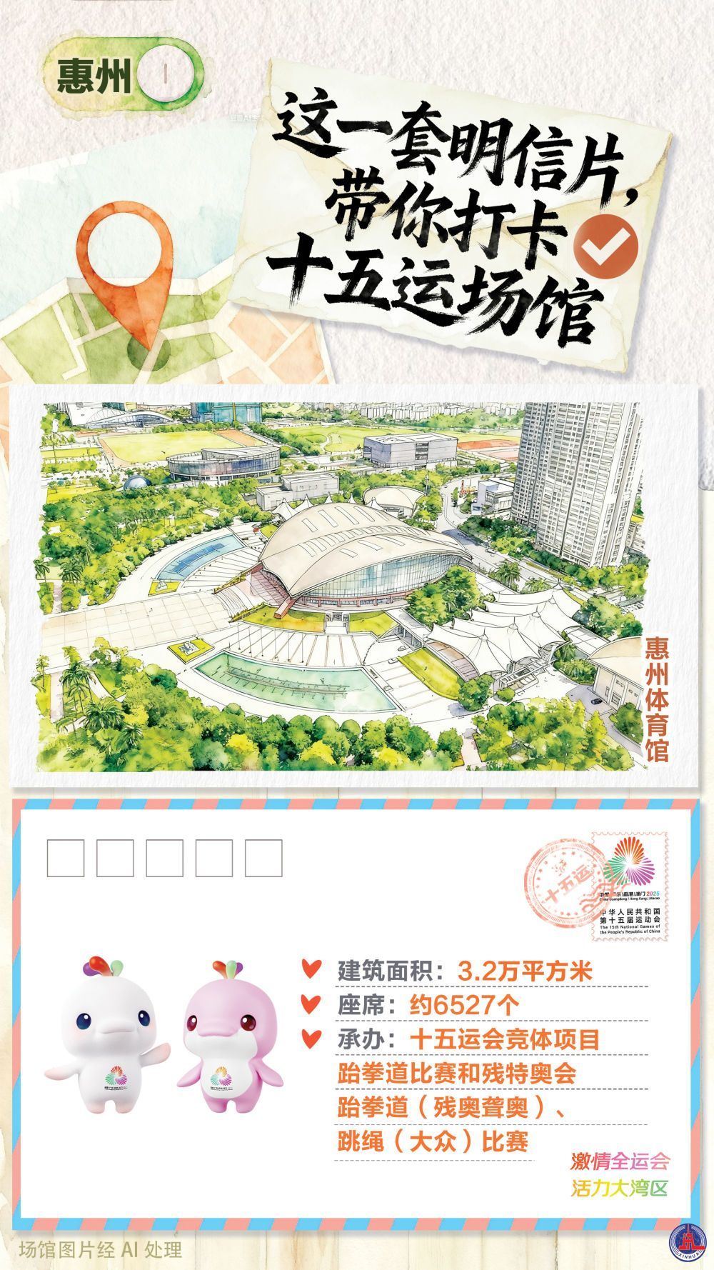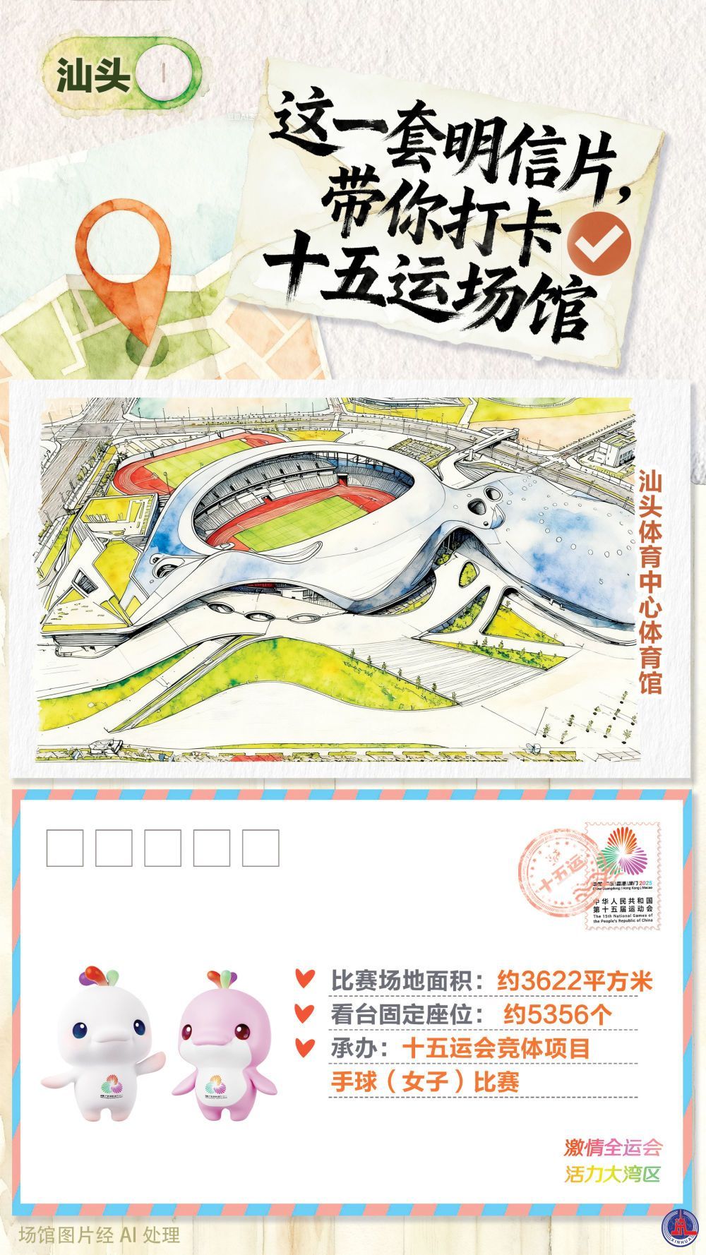 讓我們換種方式與盛會對話 —— 邀你以 “明信片打卡” 開啟場館巡禮。透過這些明信片的畫面,既能提前感受賽場的激情張力,也能觸摸粵港澳三地交融的獨特魅力。期待與你一同,以明信片為媒,收藏屬于本屆全運會的獨家記憶。