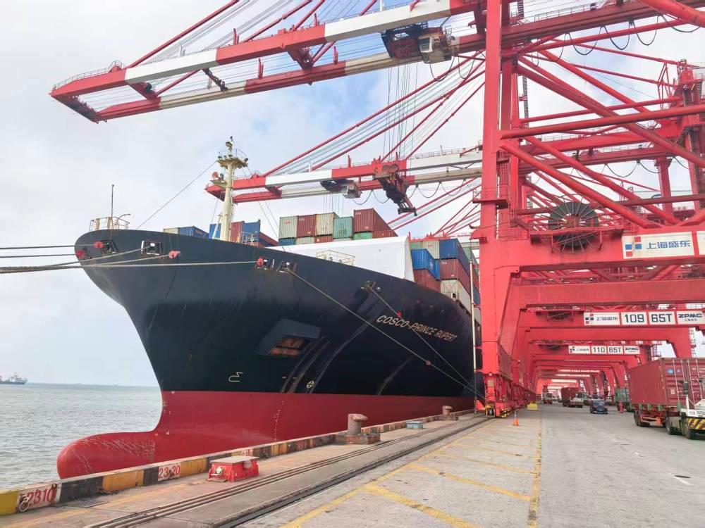△2025年10月15日,上海洋山深水港,首批來自秘魯錢凱港的進博會展品順利卸貨。
