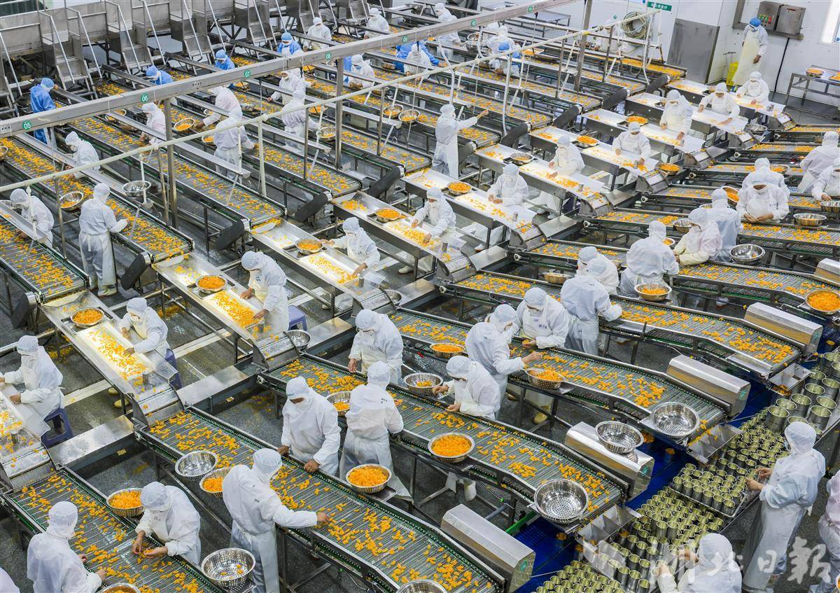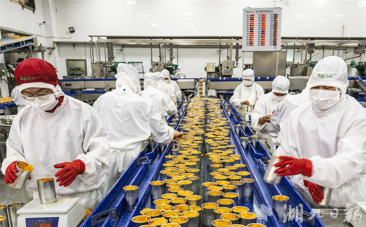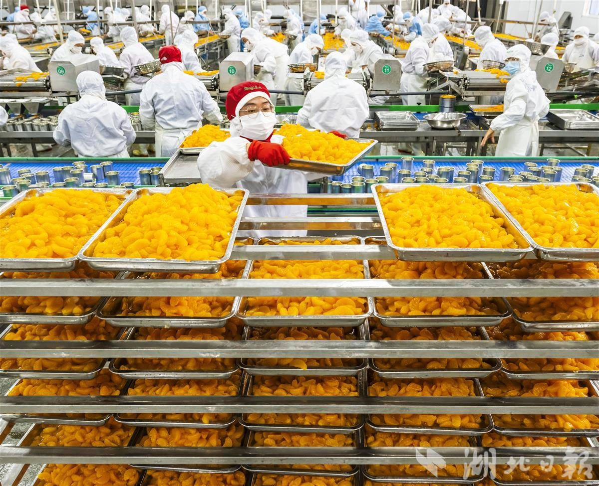 11月5日,在秭歸縣屈姑國際農業集團柑橘深加工生產車間,工人正在生產線上忙碌。