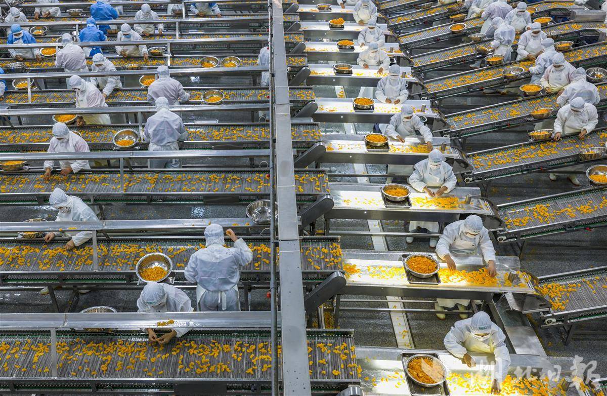 當下正值柑橘集中上市時節,秭歸縣的外貿加工企業生產線滿負荷運轉,將新鮮柑橘加工成罐頭、橙醋等產品,銷往美國、俄羅斯、日本等140多個國家和地區,出口訂單持續攀升。秭歸是“中國臍橙之鄉”,臍橙種植面積超40萬畝,產業鏈綜合產值突破250億元。當地通過“企業+基地+科研+農戶”模式,實現柑橘全產業綜合利用,開發出百余種精深加工產品,有效提升了產業附加值,帶動果農增收。(視界網 鄭家裕 陳艷芳 攝)
