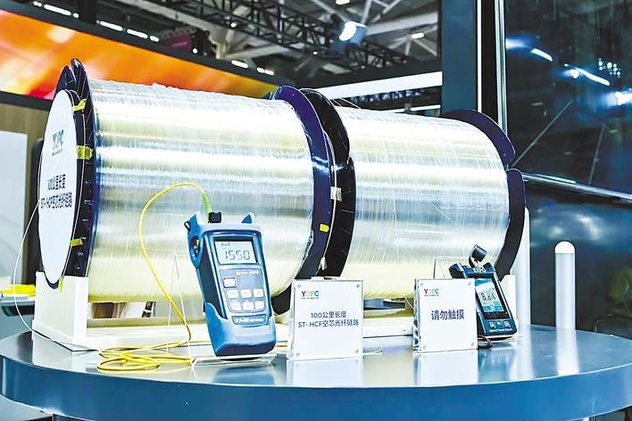 長飛公司在展會上展示其空芯光纖。(受訪單位供圖)
