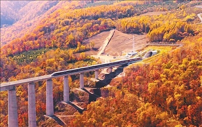 縱觀全線,在長白山余脈與遼河平原間,沈白高鐵以77%的橋隧比穿越山水。