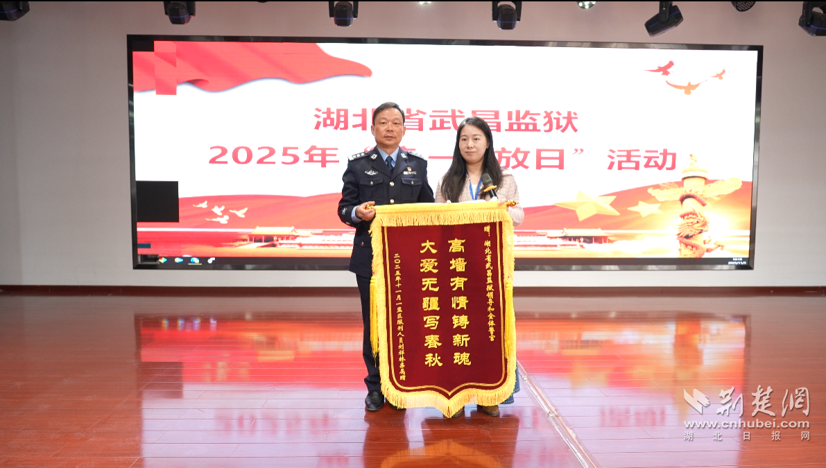活動(dòng)現(xiàn)場(chǎng),一名服刑人員家屬代表向監(jiān)獄贈(zèng)送錦旗。錦旗上“高墻有情鑄新魂,大愛無疆寫春秋”14個(gè)金色大字,在燈光下熠熠生輝,道出了家屬們的共同心聲。“今天站在這里,我想代表所有家屬,向武昌監(jiān)獄的民警們說一聲‘謝謝’!”劉女士的聲音帶著激動(dòng),也帶著真切的感激。她的父親因過失犯罪入獄,起初家人都陷入了絕望,“第一次來會(huì)見時(shí),他情緒低落,對(duì)未來毫無信心。但這兩年,我看到他一點(diǎn)點(diǎn)在變化,去年還獲得了監(jiān)獄級(jí)改造積極分子,是監(jiān)獄給了他重新做人的機(jī)會(huì),也給了我們家庭希望。這面錦旗,代表著我們所有家屬的心意,感謝監(jiān)獄為服刑人員改造付出的一切!”現(xiàn)場(chǎng)掌聲雷動(dòng),不少家屬和服刑人員都紅了眼眶。這面錦旗,不僅是家屬與監(jiān)獄之間的情感紐帶,更成為激勵(lì)服刑人員積極改造的精神動(dòng)力。