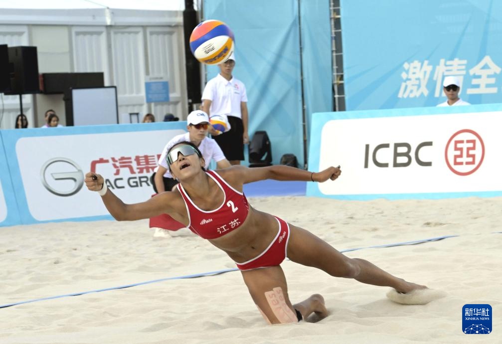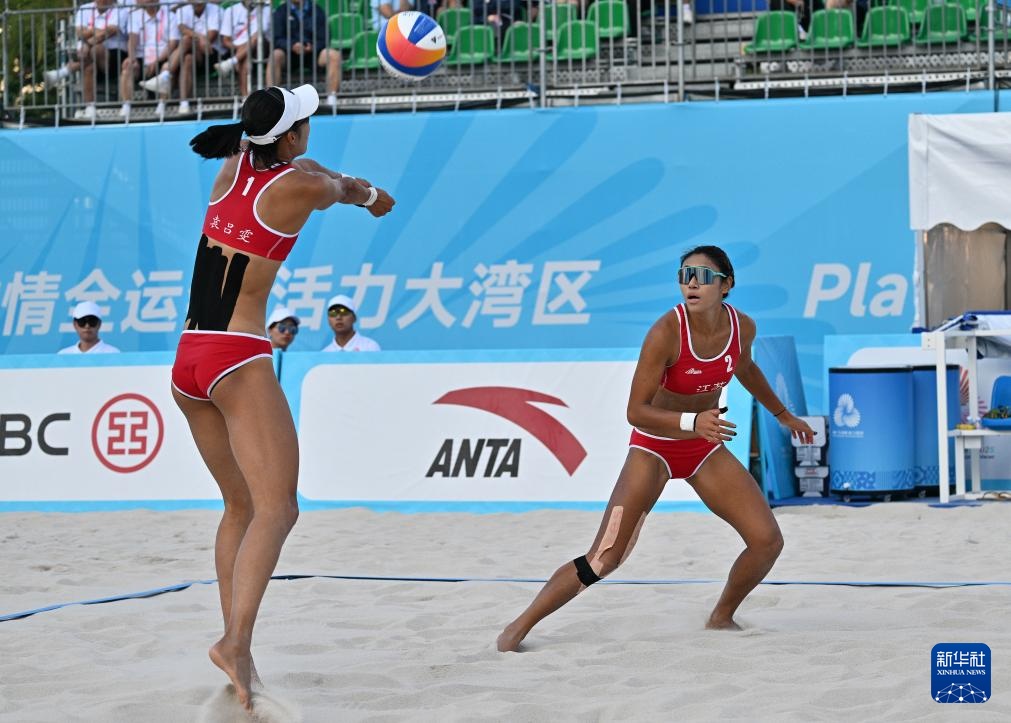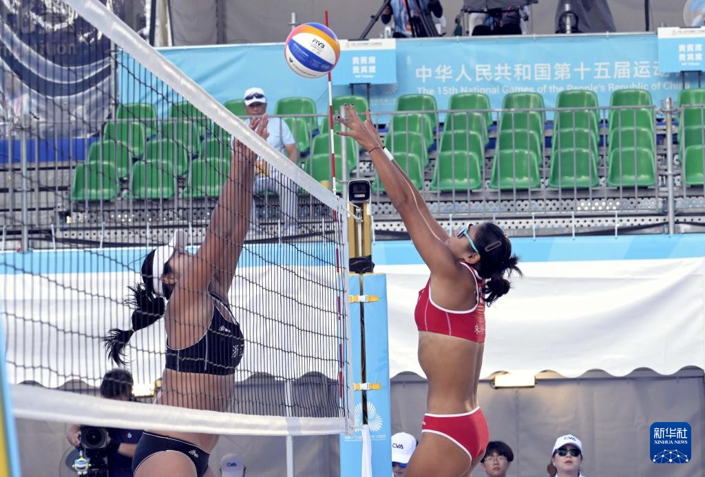 當(dāng)日,第十五屆全國(guó)運(yùn)動(dòng)會(huì)沙灘排球女子1/8決賽在香港維多利亞公園進(jìn)行。