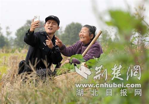 民警通過手機視頻,向田間勞作的村民科普潘集湖國家濕地公園越冬候鳥保護的相關法律法規知識。通訊員 供圖