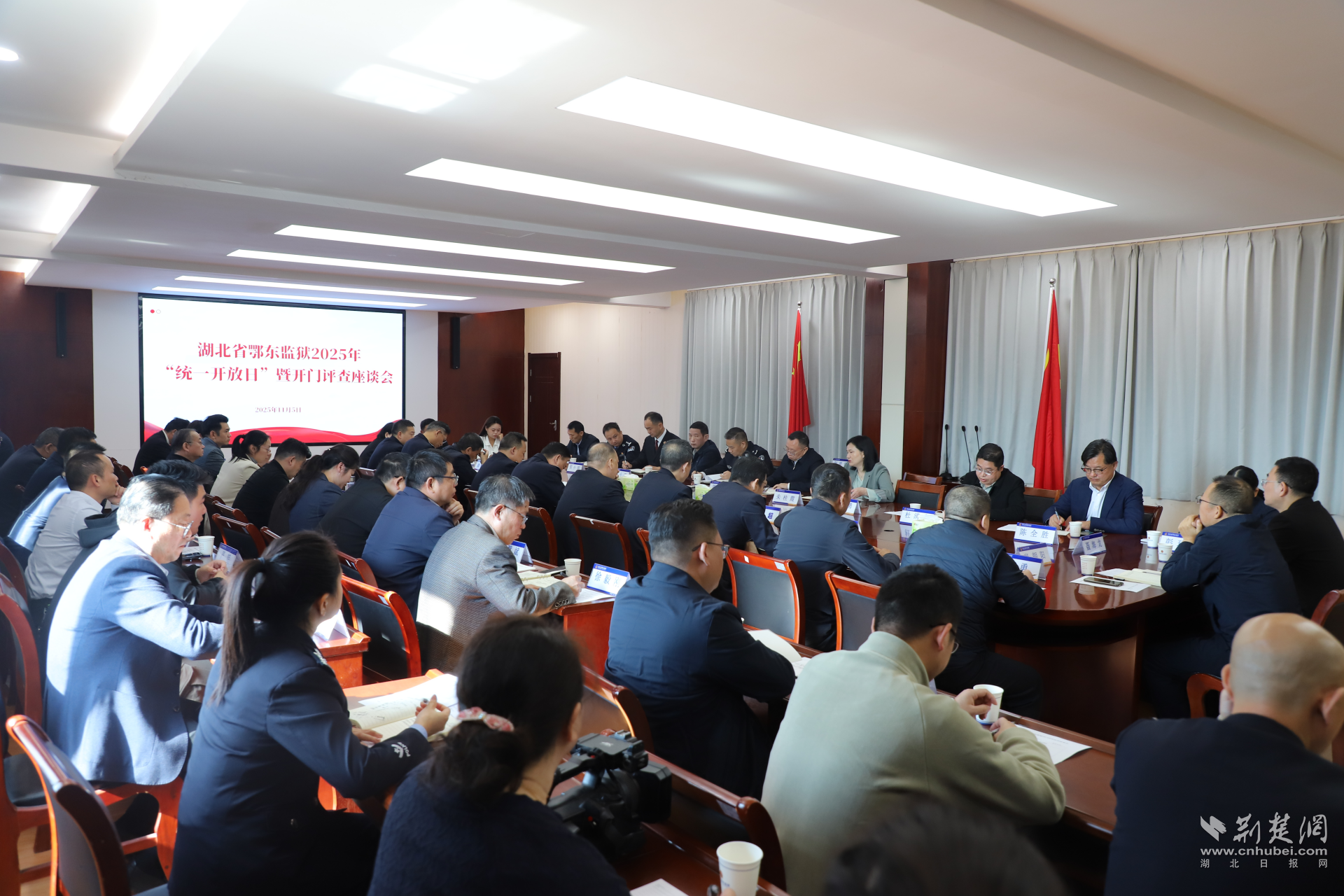 荊楚網(湖北日報網)訊(通訊員 王子豪、李慶)為推動監獄工作社會化,在省監獄局統一部署下,11月5日,鄂東監獄開展了“陽光執法促公正,親情幫教促新生”開放日活動。黃岡市委政法委、市人大、市政協、市檢察院、市法院、武警黃岡支隊、市公安局、市司法局、市財政局、市教育局、市農業農村局、市文旅局、市融媒體中心、民盟黃岡市委會、市中心醫院、市勞動就業局、黃州區路口鎮政府等20家地方單位領導、執法監督員及服刑人員家屬共150余人走進高墻,近距離感受監獄建設、管理、執法及服刑人員改造成果。省監獄管理局黨委委員、政治部主任齊興旺應邀出席活動并參加座談。