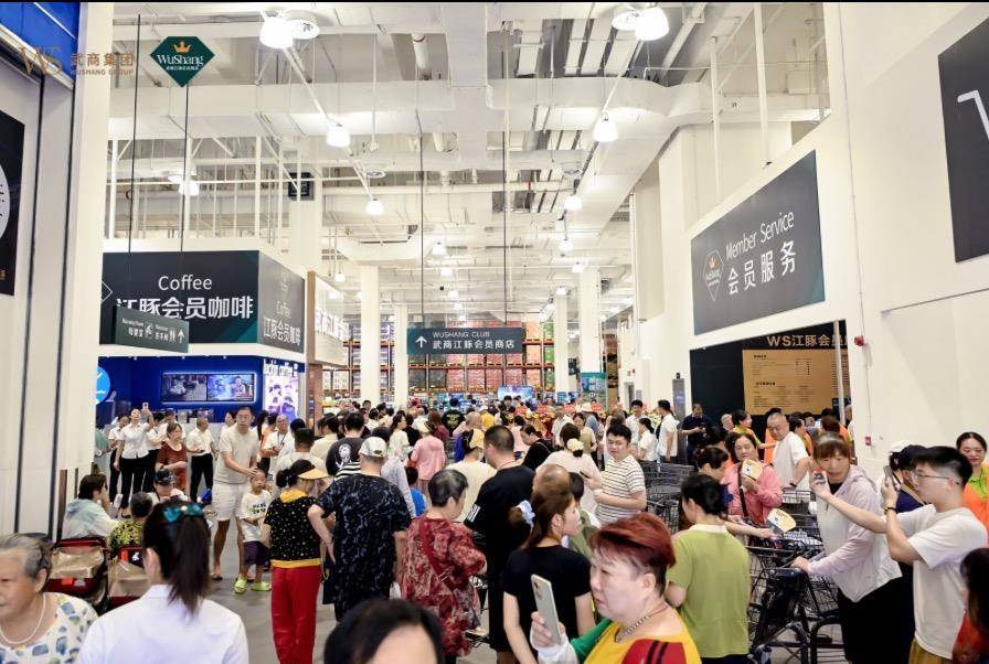 WS江豚會員店首店位于東西湖區金山大道與七雄路交匯處,營業面積超10000平方米,面向付費會員開放。在7月29日開業當天,該店客如潮涌。