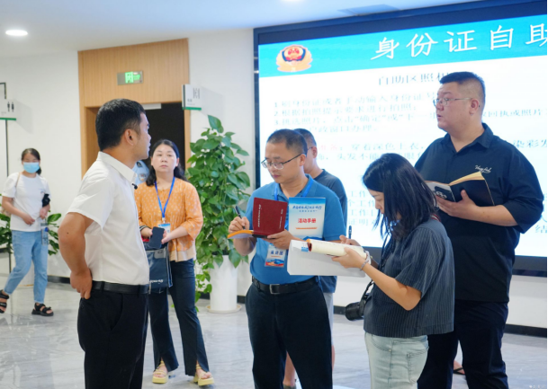 “央省媒體咸寧政法一線行”采訪團(tuán)在咸寧市民之家公安窗口采訪。熊子恒 攝