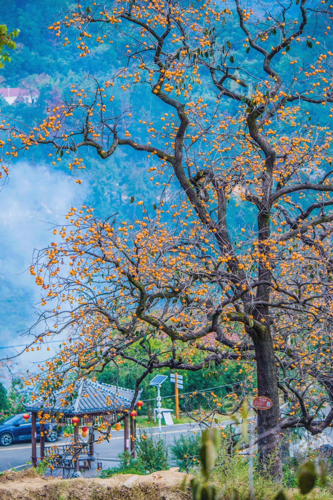 羅田鏨字石村甜柿成熟掛滿枝頭,柿林掩映山村成獨特風(fēng)景