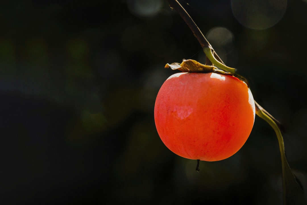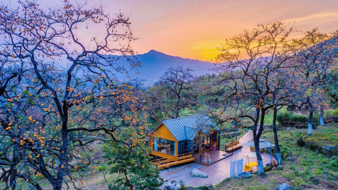 羅田鏨字石村甜柿映著霞光,吸引游客觀光