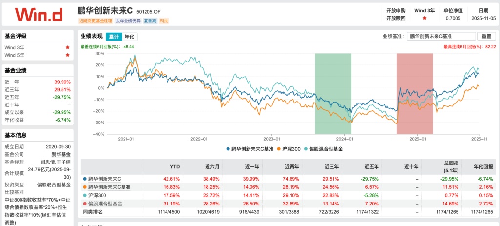 其中,鵬華創(chuàng)新未來為閆思倩和王子建共同管理的產(chǎn)品,截至11月5日,鵬華創(chuàng)新未來C的年內(nèi)收益率達(dá)42.61%。而王子建單獨(dú)管理的另一只產(chǎn)品——鵬華遠(yuǎn)見精選A的年內(nèi)業(yè)績?yōu)?5.24%。