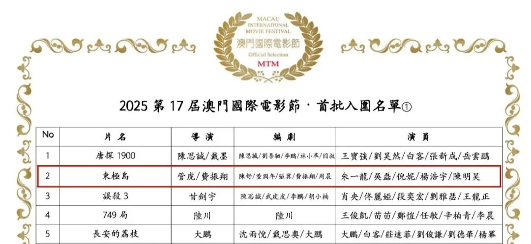 來源:澳門國際電影節、@貓眼電影、@電影東極島、長江日報