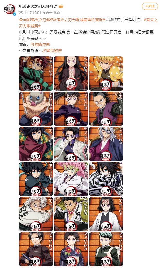 來源:綜合@1905電影網官博、@電影鬼滅之刃無限城篇、潮新聞