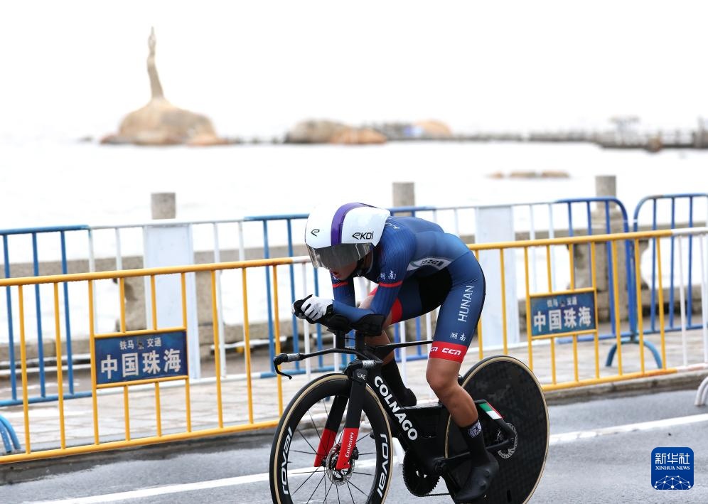 當(dāng)日,第十五屆全國運動會公路自行車女子個人計時賽決賽在珠海開賽。