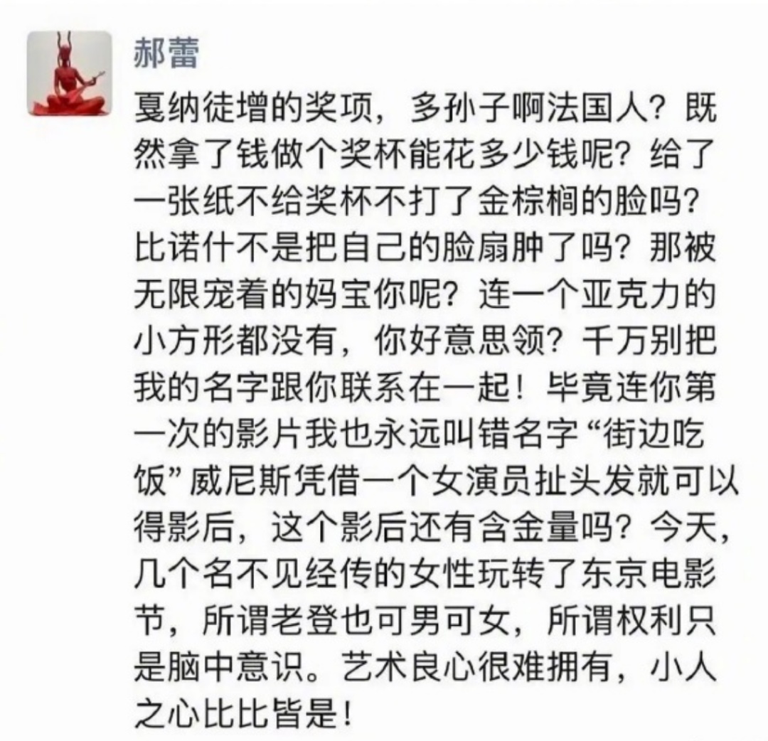 11月7日,一張網傳為郝蕾朋友圈的截圖,引爆“獎項運作”傳聞。