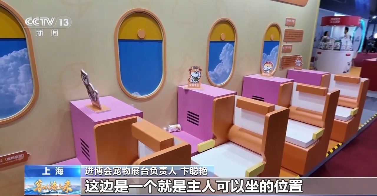 進博會寵物展臺負責人 卞聰艷:整個的500平的這個地方,我們其實是采取了一個航站樓的概念,因為現在其實除了可以高鐵攜寵之外,我們還是可以把寵物和我們一起帶入機艙里面。