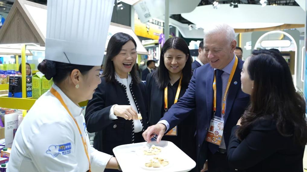 同為“全勤生”的紐仕蘭今年帶來了來自新西蘭的更多新伙伴。感受到進博這一開放平臺和中國大市場的巨大引力,今年有26家新西蘭企業、29個品牌在紐仕蘭展臺組團亮相,進一步擴大了進博“朋友圈”。