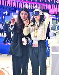觀眾在第八屆進博會醫療器械及醫藥保健展區體驗智能眼鏡。新華社發