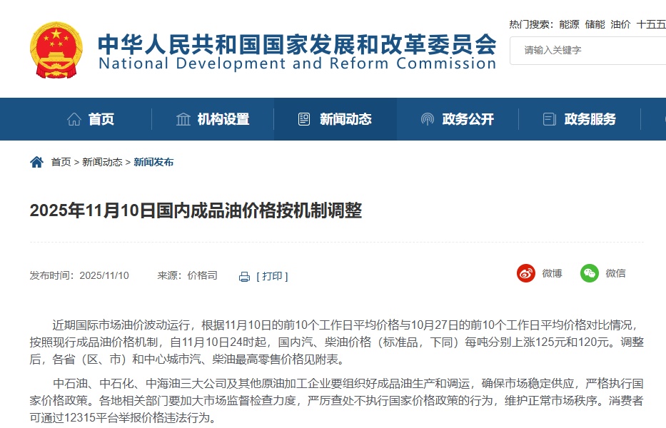 原標(biāo)題:2025年11月10日國(guó)內(nèi)成品油價(jià)格按機(jī)制調(diào)整