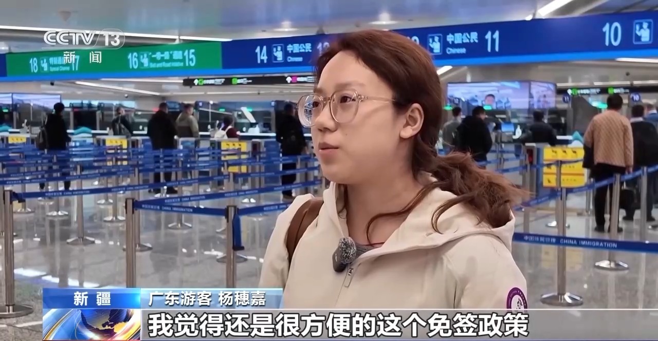 廣東游客 楊穗嘉:從廣州過來的,我覺得還是很方便的,這個免簽政策,像我今年已經飛了兩次哈薩克斯坦了,從烏魯木齊中轉,然后航班的選擇也比較多。