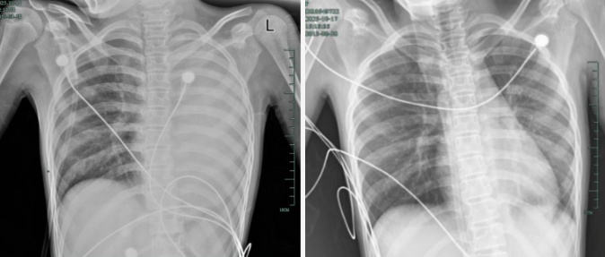 治療前后影響對(duì)比,左肺從“白肺”到正常狀態(tài)