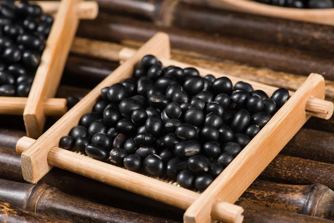 取黑米、黑豆各30~50克,黑芝麻15克,可加入適量桑葚干、枸杞子,打成豆?jié){后飲用。
