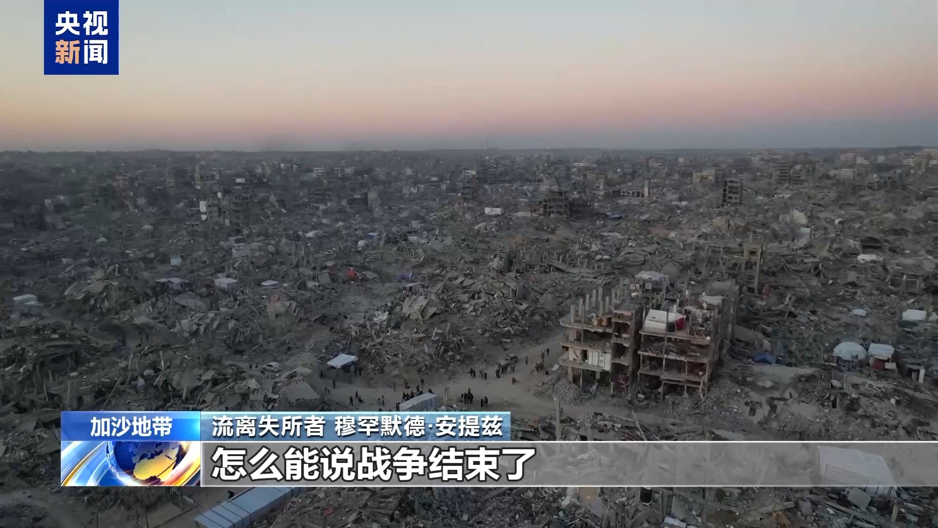 流離失所者 穆罕默德·安提茲:他們說,戰(zhàn)爭結束了。怎么會呢?我的房子被完全炸毀,怎么就算結束了?邊境沒有完全開放,沒有充足的食物或援助,怎么能說戰(zhàn)爭結束了?我根本沒有感覺到結束,因為我們依然生活在戰(zhàn)爭的陰影里。