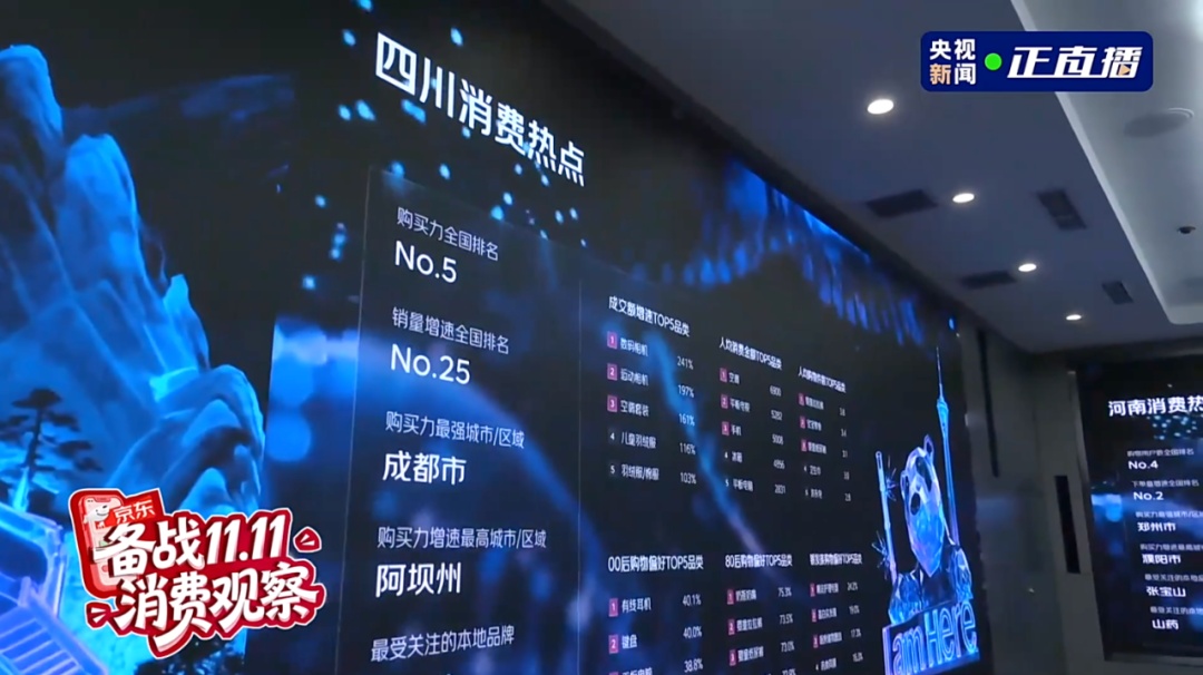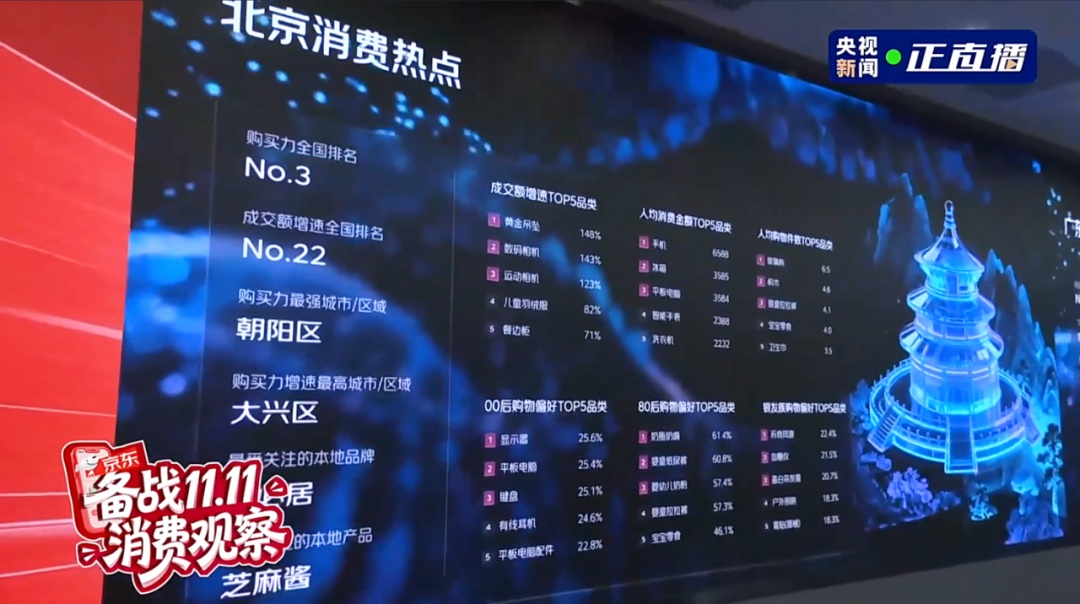 同時(shí),通過(guò)屏幕數(shù)據(jù),還能了解近段時(shí)間不同地區(qū)的消費(fèi)熱點(diǎn)以及口味偏好。在北京,芝麻醬成為最受關(guān)注的本地產(chǎn)品。從年齡看,00后購(gòu)買(mǎi)最多的是顯示器,老人則更關(guān)注藥食同源類商品;從人均購(gòu)物件數(shù)看,玻璃杯成為T(mén)OP1。