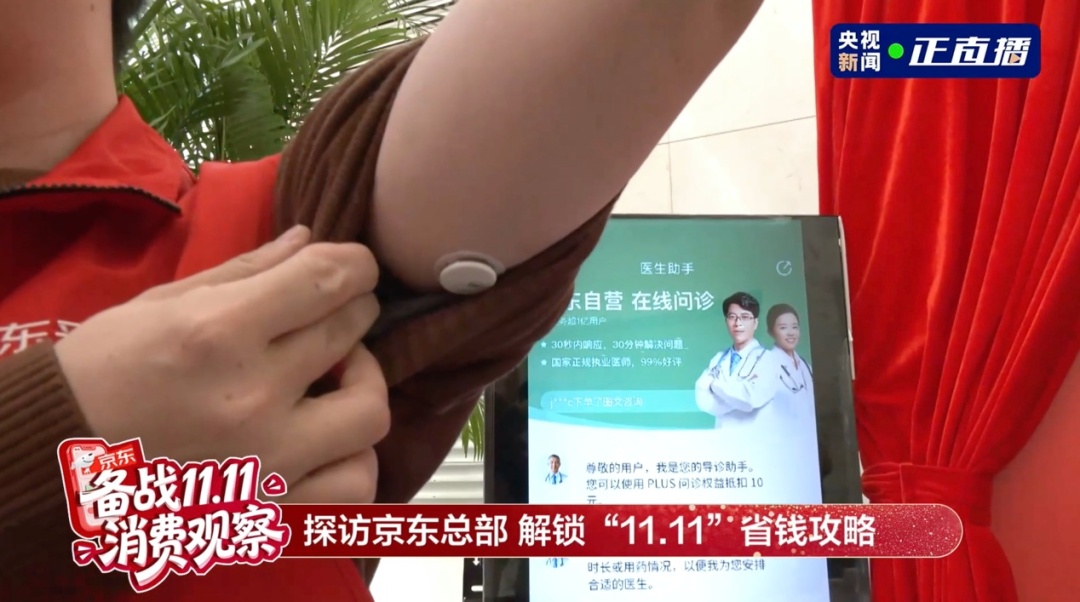 京東健康采銷(xiāo)直播間,京東定制版動(dòng)態(tài)血糖儀便捷監(jiān)測(cè)15天血糖數(shù)值,接入京醫(yī)千詢健康醫(yī)療大模型,消費(fèi)者可以在京東健康A(chǔ)pp上在線問(wèn)診,得到醫(yī)生給出的飲食、運(yùn)動(dòng)建議。