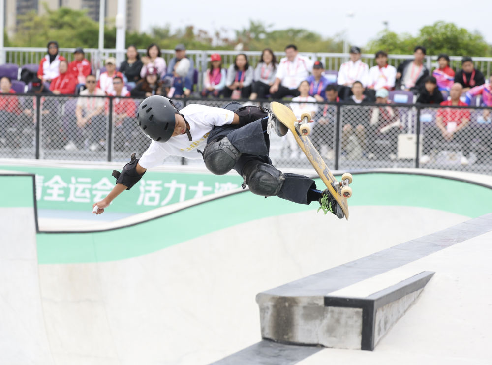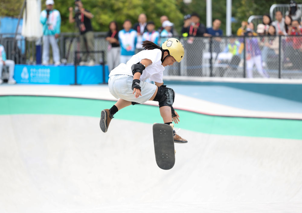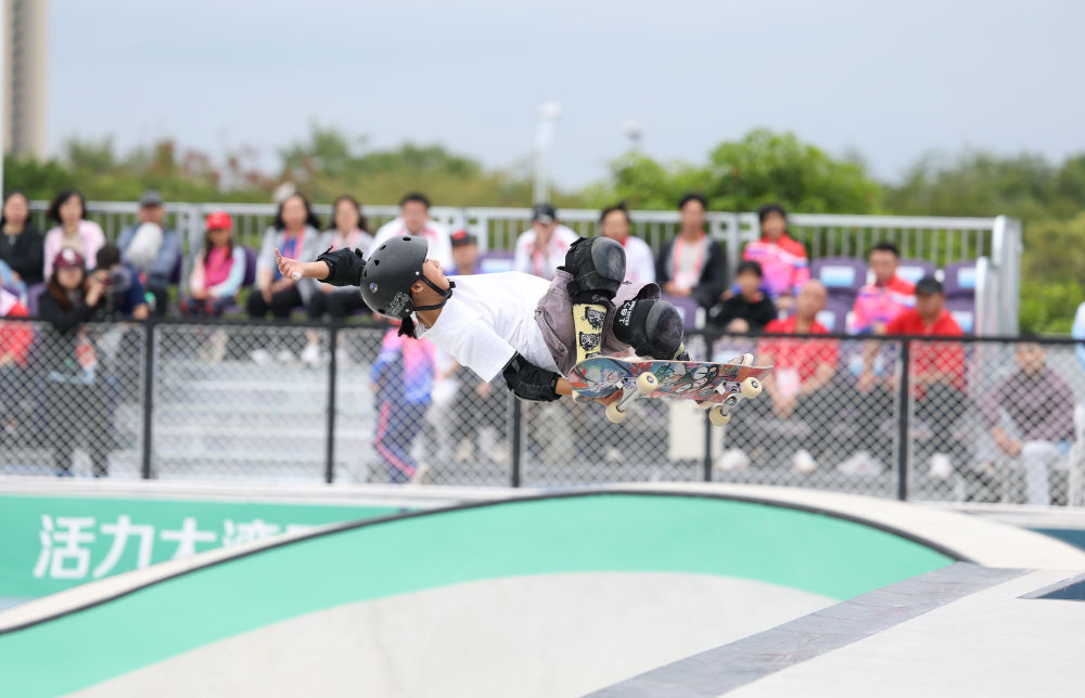 11月11日,第十五屆全國運(yùn)動(dòng)會(huì)滑板項(xiàng)目女子碗池賽決賽在廣東惠州舉行,廣東隊(duì)選手鄒明珂獲得冠軍,山東隊(duì)選手孟令妍獲得亞軍,廣東隊(duì)選手鄭好好獲得季軍。