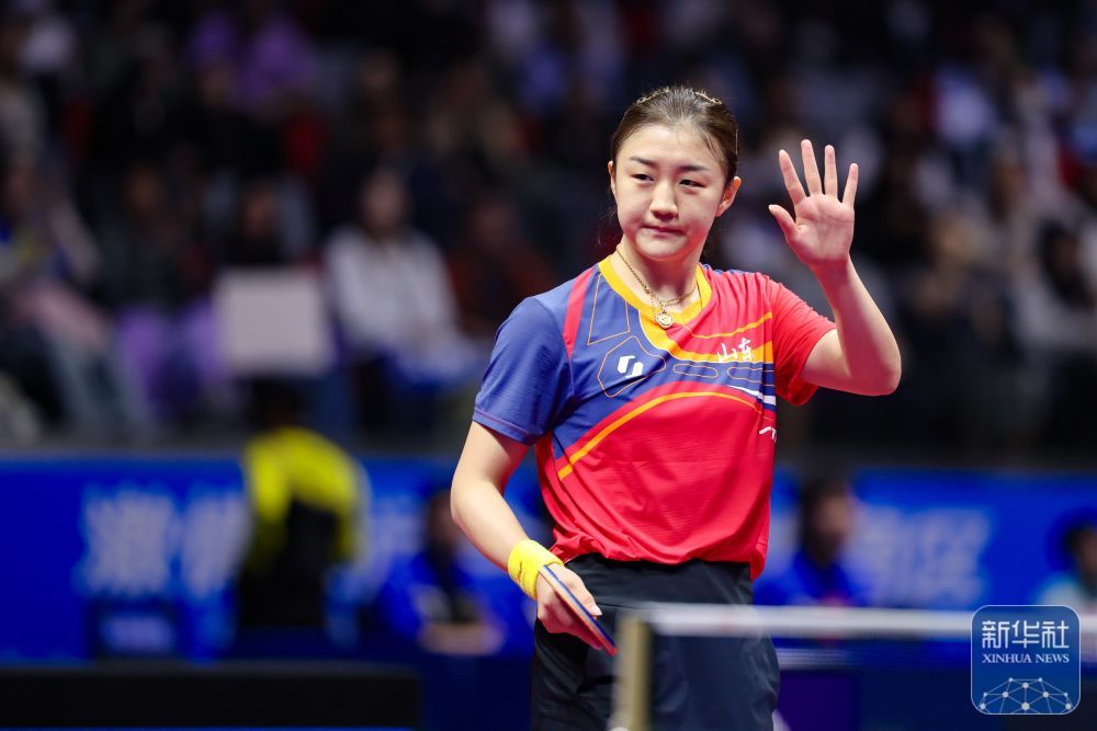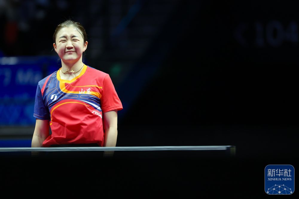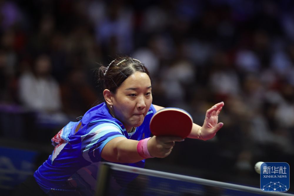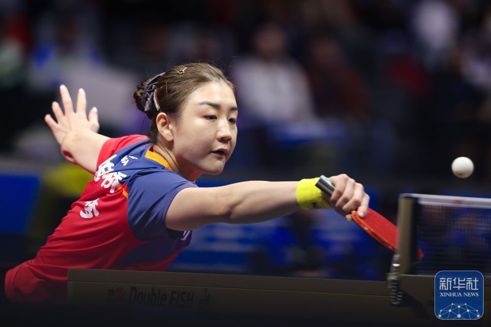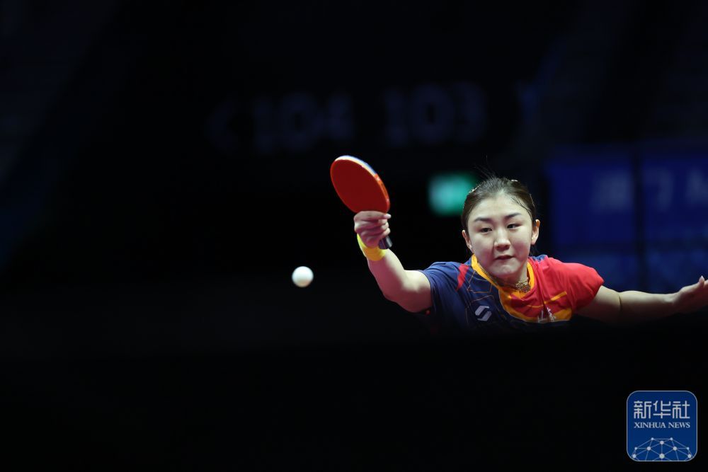 ↑陳夢在比賽中回球。新華社記者 劉續(xù) 攝