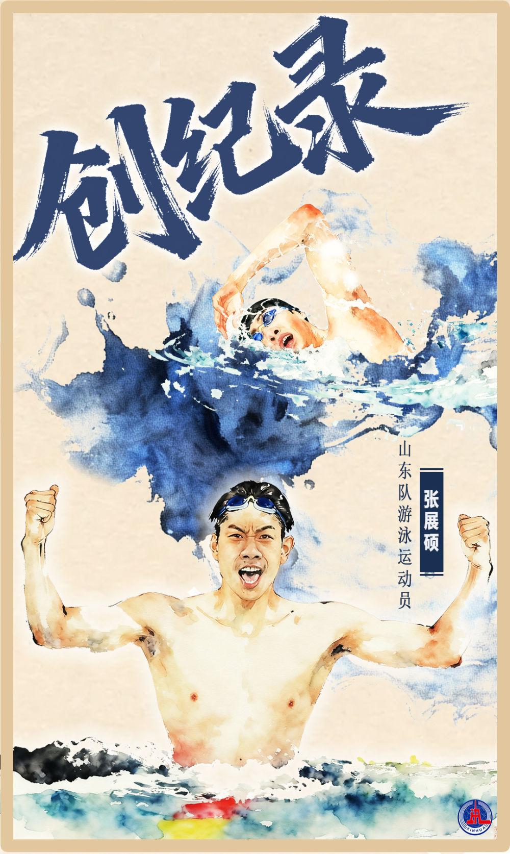2025年11月10日,山東隊選手張展碩在男子400米自由泳決賽后慶祝奪冠。新華社記者 杜宇 攝
