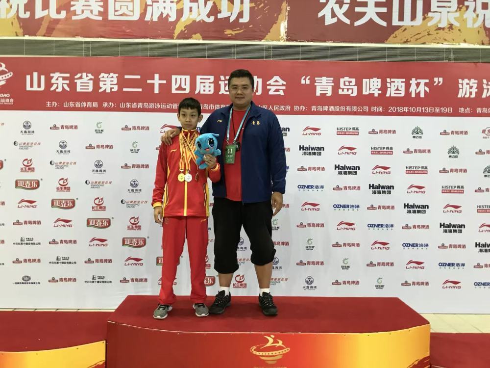 2018年,張展碩(左)在山東省第24屆運動會上與教練員柳子謙合影。青島市體育局供圖
