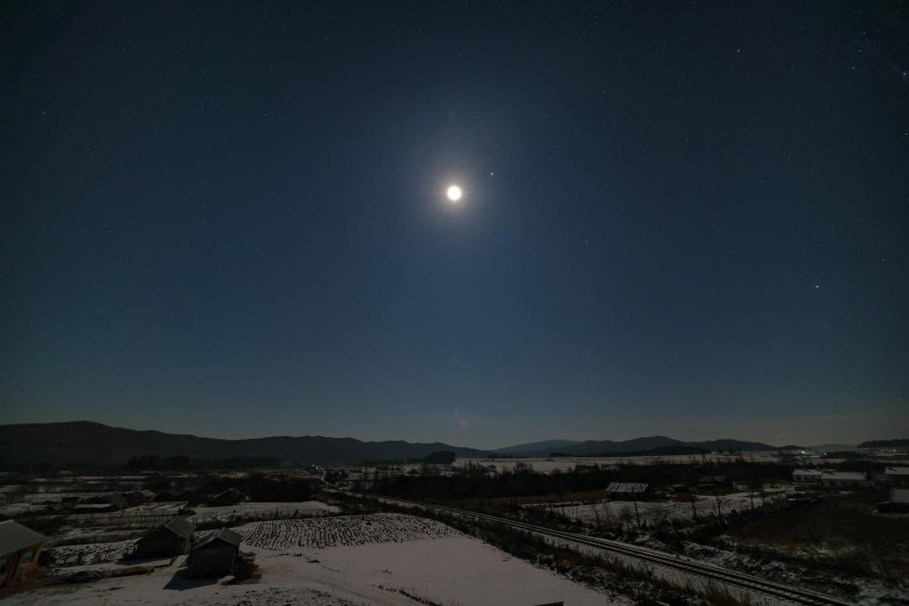11月11日在黑龍江省富錦市拍攝的“雙星伴月”。新華社發(曲玉寶攝)
