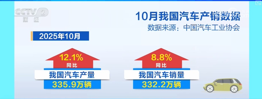 最新數據顯示,2025年1至10月份,我國汽車產銷量分別完成2769.2萬輛和2768.7萬輛,同比增長均超過10%。其中,新能源汽車產銷量分別完成1301.5萬輛和1294.3萬輛,同比分別增長33.1%和32.7%。