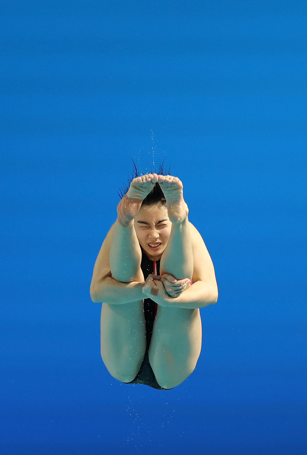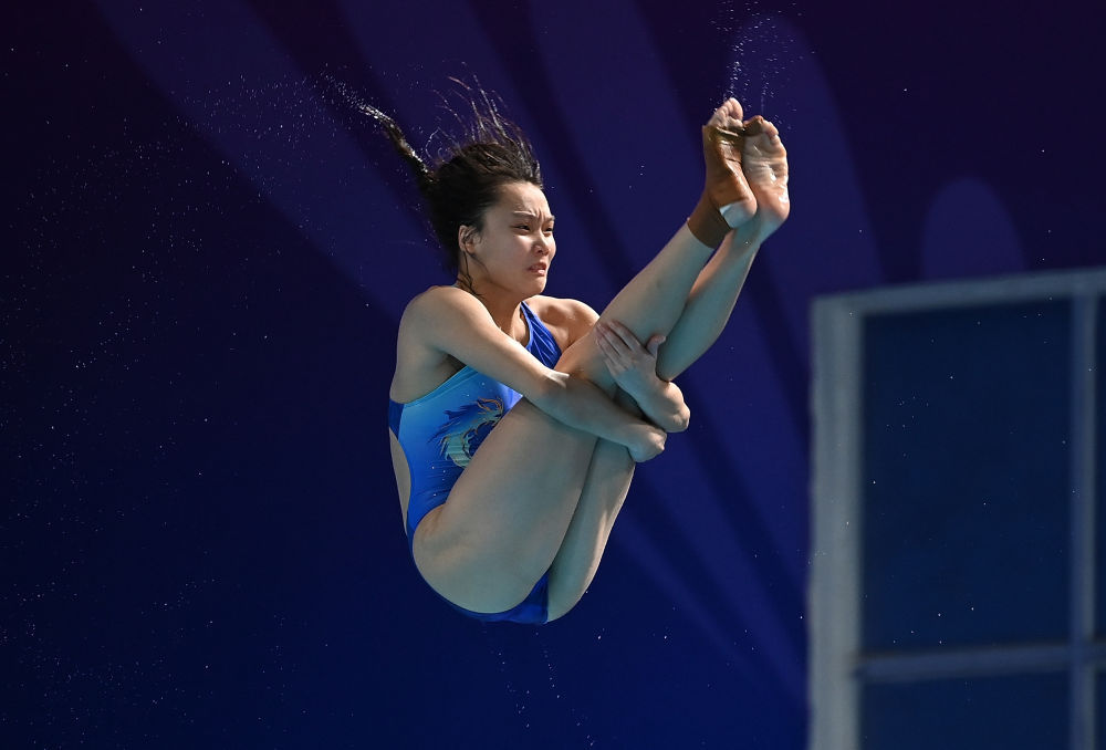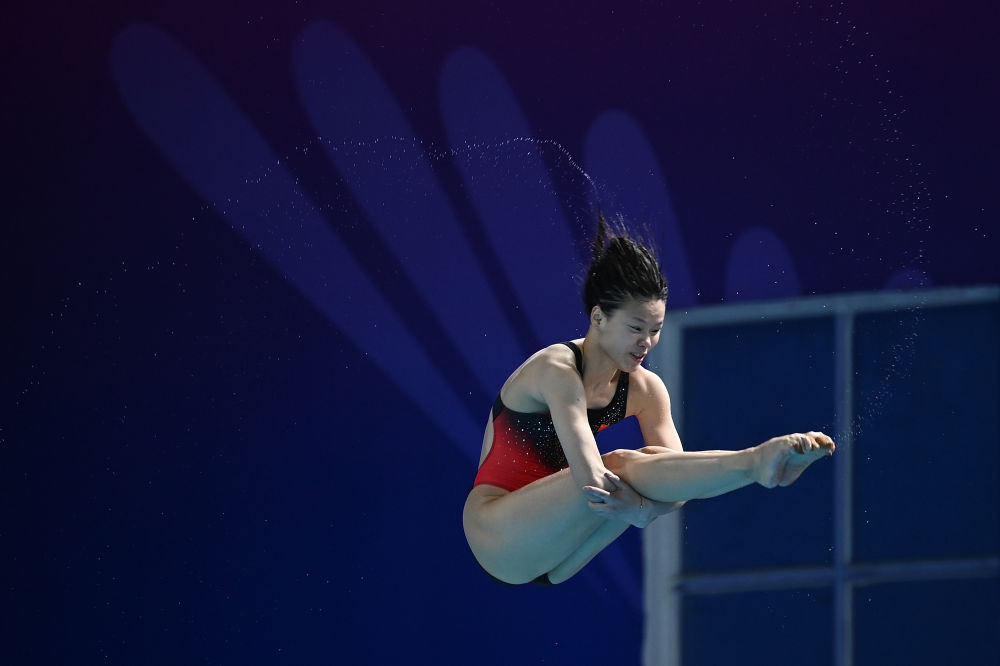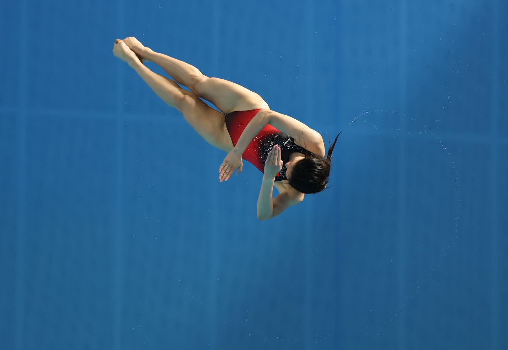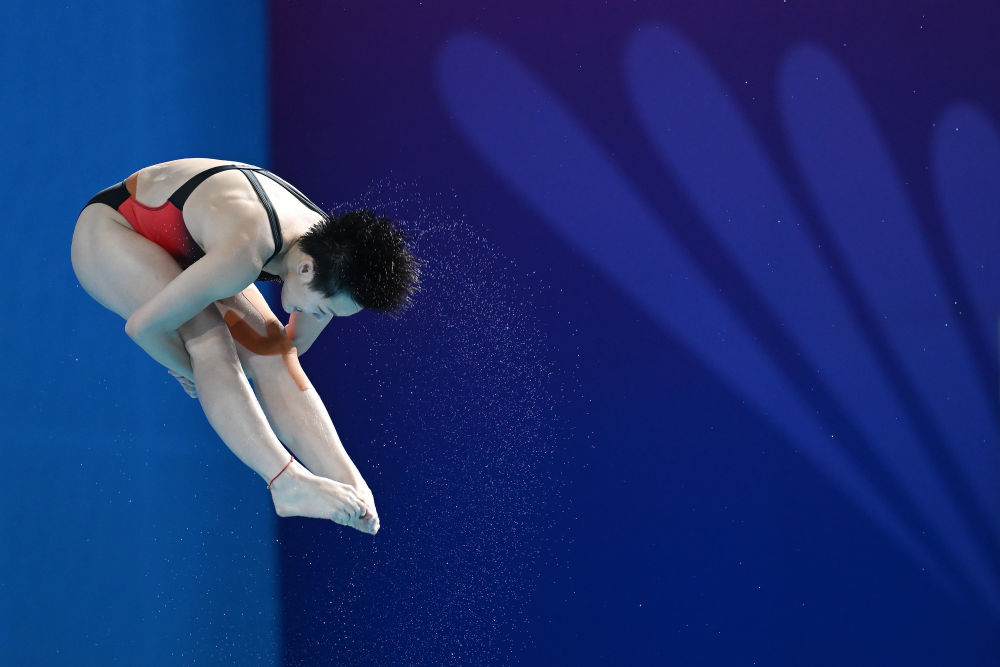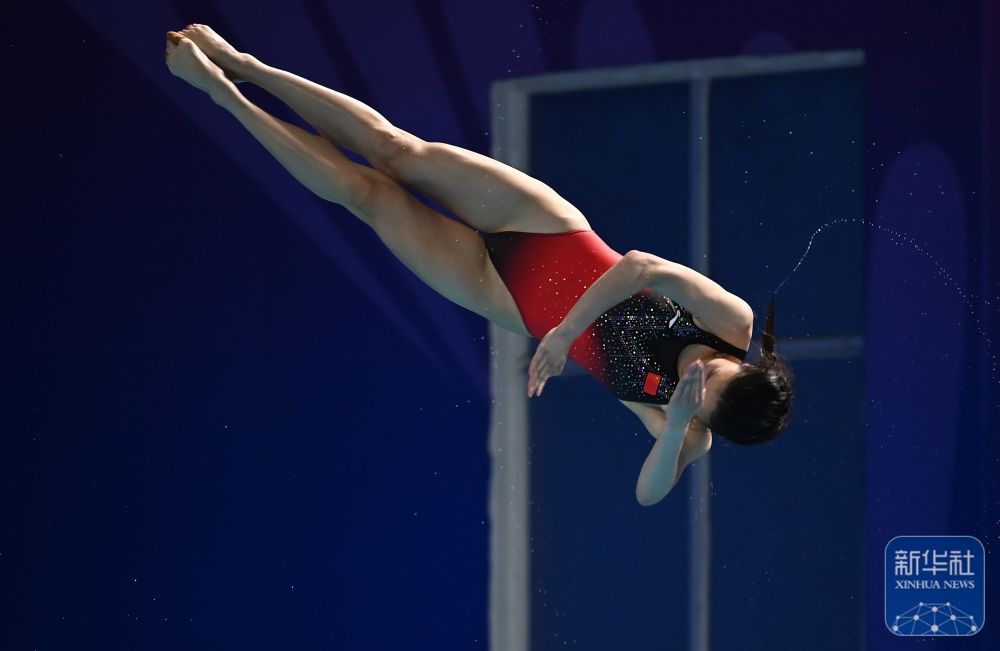 ↑ 廣東隊(duì)選手陳藝文在比賽中入水。 新華社記者 肖藝九 攝