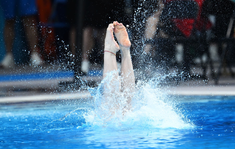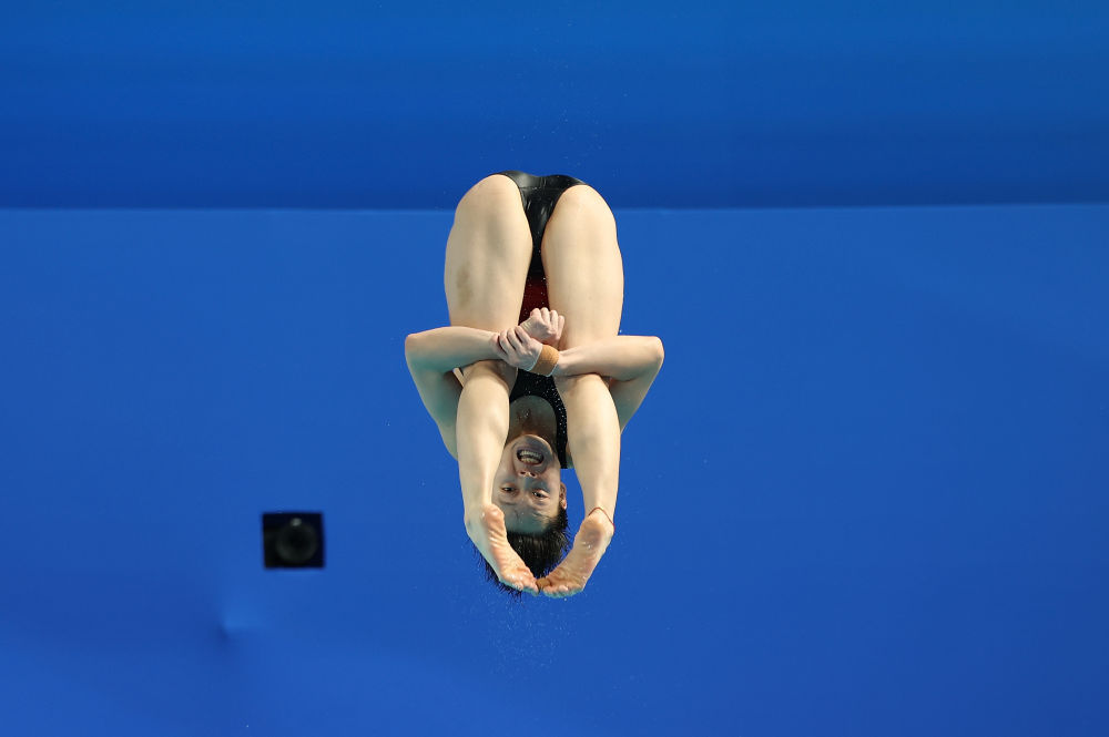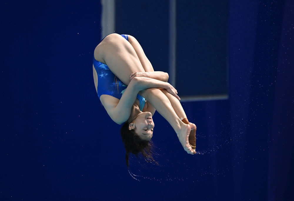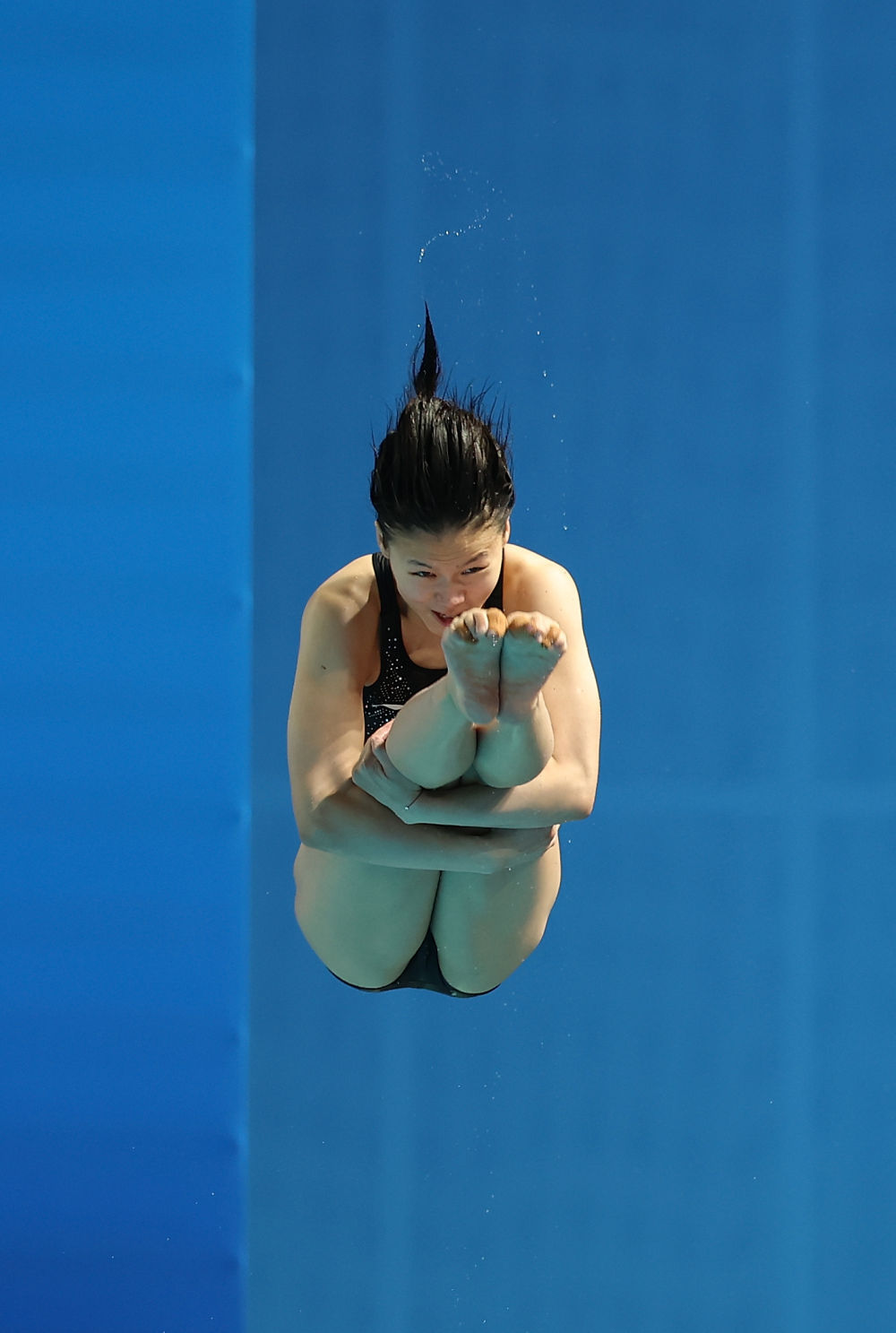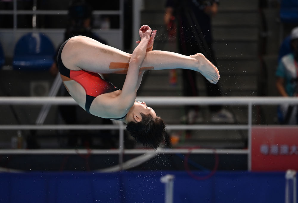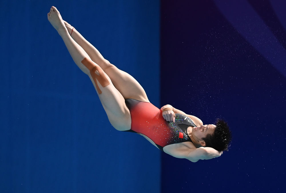 ↑ 廣東隊(duì)選手陳藝文在比賽中入水。 新華社記者 肖藝九 攝