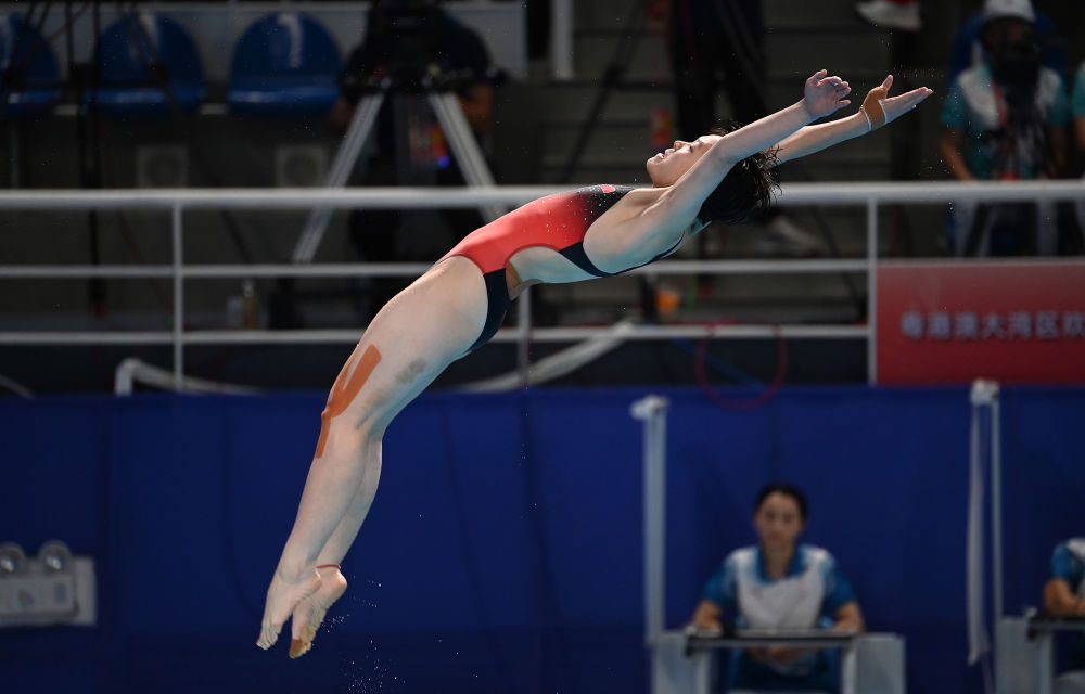 11月11日,第十五屆全國(guó)運(yùn)動(dòng)會(huì)跳水項(xiàng)目女子3米跳板決賽在廣州舉行。最終,廣東隊(duì)選手林珊獲得冠軍,四川隊(duì)選手陳佳獲得亞軍,廣東隊(duì)選手陳藝文獲得季軍。