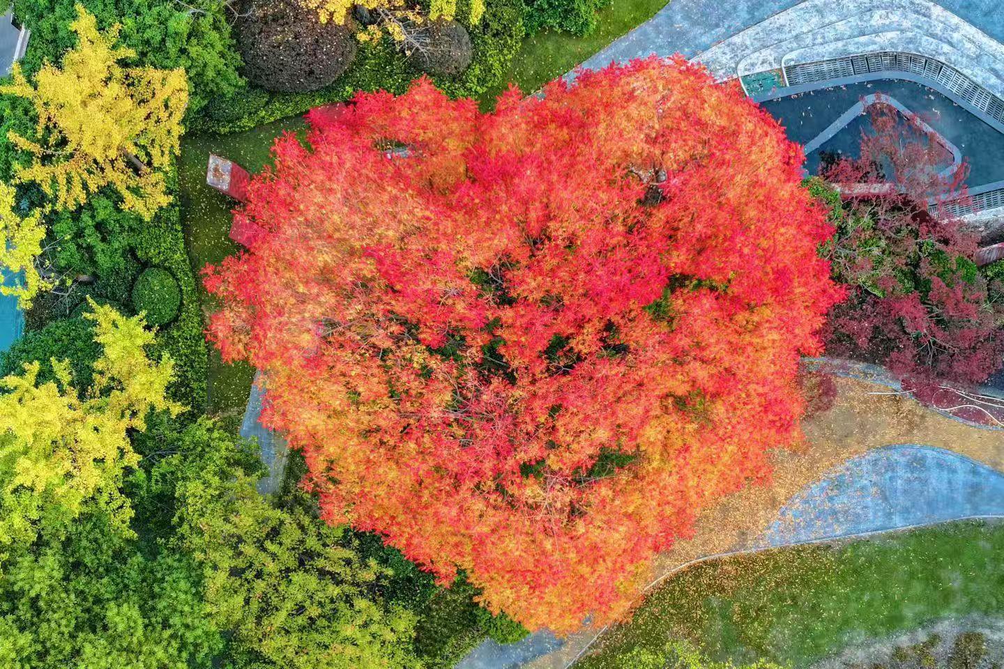 近日,在武漢園博園北區的南通園,一棵15米高的黃連木葉片變得紅紅火火,顏值高,鶴立雞群,在一眾植物中特別醒目,吸引很多游客們拍照,“這么漂亮的樹,在街頭和公園很少見啊!”市民方女士認為,黃連木比紅楓更氣場強大。