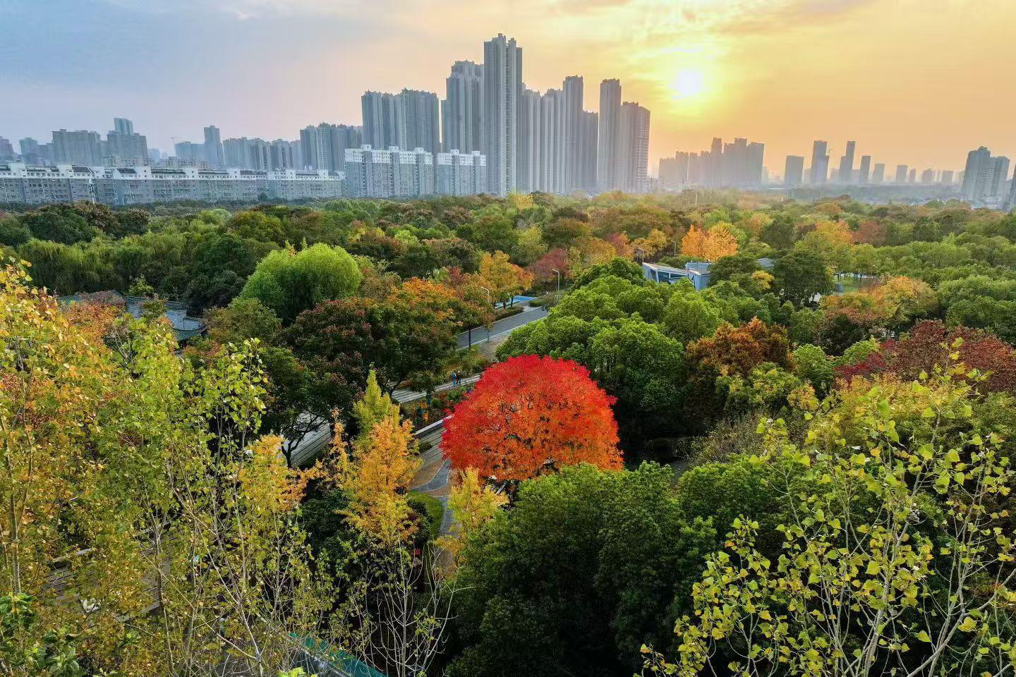 武漢園博園南通園黃連木紅似一團火