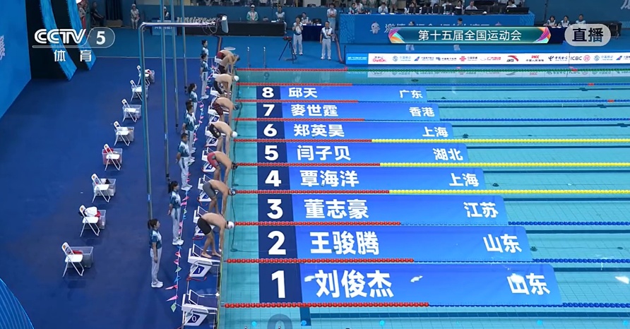 在第十五屆全國(guó)運(yùn)動(dòng)會(huì)男子100米蛙泳決賽中,覃海洋代表上海隊(duì)出戰(zhàn),奪得金牌。恭喜!