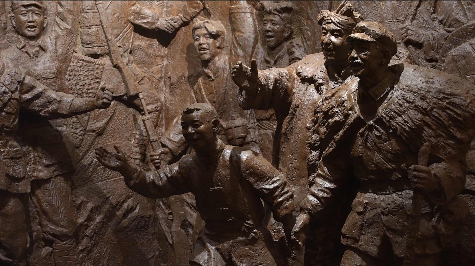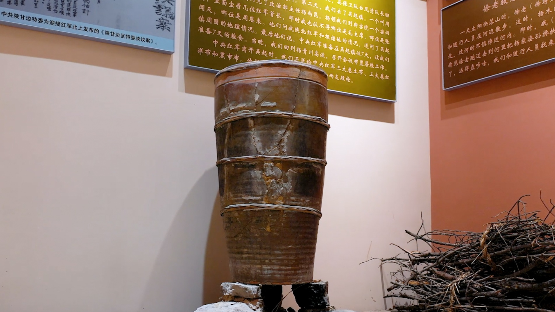 大家看這口缸,原件是國家三級文物“紅軍鍋”。這是當年紅軍賠了兩塊銀元的“天價鍋”。中央紅軍到達吳起鎮時,做飯沒有鍋,就向當地村民借了這口缸來做飯。紅軍的食物是難熟的黑豆、蕎麥,火一大,飯沒煮熟,缸卻燒裂了幾道口子。這只是長征路上無數艱難險阻的一個縮影。“苦不苦,想想長征兩萬五。累不累,想想革命老前輩。”苦難鑄就輝煌,經過餓其體膚,苦其心志,前輩們接住了天降大任。他們不僅克服了生存困難,而且升華了思想和修養,使這山溝里不僅有馬克思主義,而且有文采風騷。長征精神的底色就是不怕苦、不畏難,毛主席《七律·長征》第一句就是“紅軍不怕遠征難”,怕苦就會當逃兵,不怕苦才能踏盡坎坷,才能感受萬水千山只等閑。這個精神在人民軍隊得到了很好的傳承。不久前的閱兵,激勵戰士們的口號仍然是從這里延伸出來的:“苦不苦,想想民族屈辱!累不累,想想抗戰先輩!”