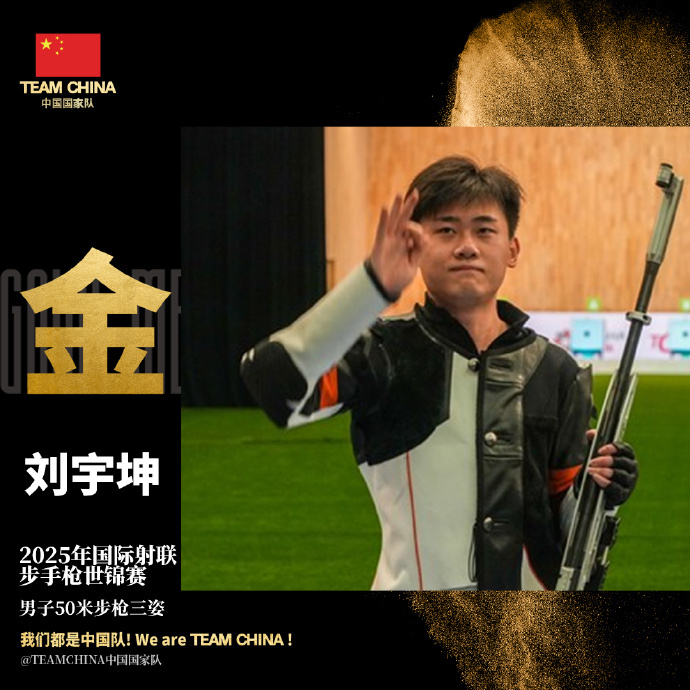 2025國際射聯步手槍世錦賽,恭喜劉宇坤奪得男子50米步槍三姿冠軍!