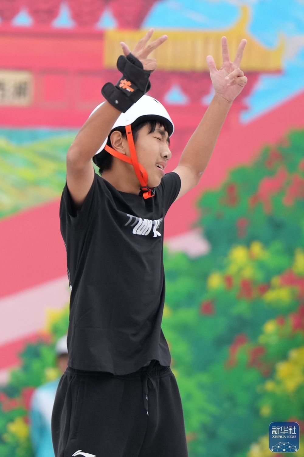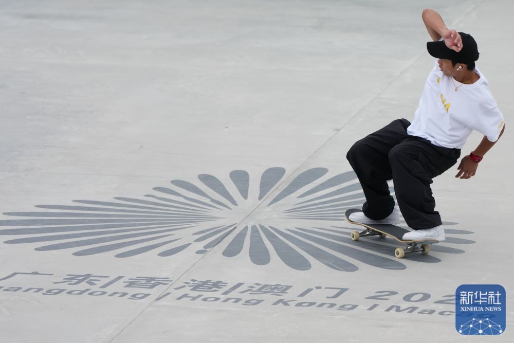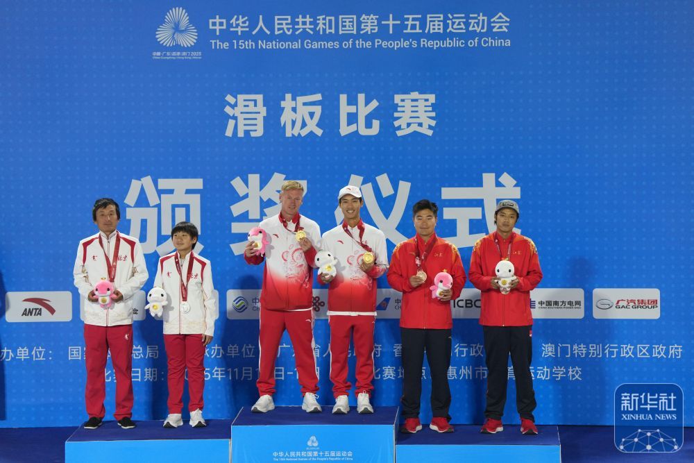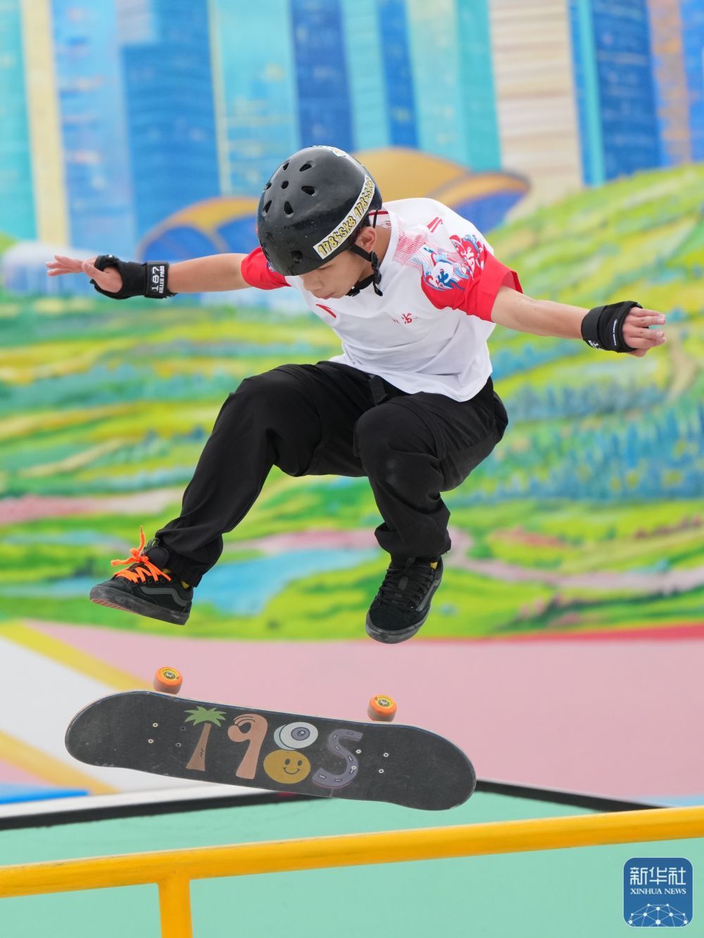 11月11日,第十五屆全國運(yùn)動會滑板項(xiàng)目男子街式賽決賽在廣東惠州舉行。廣東隊(duì)選手潘家杰奪冠,北京隊(duì)選手王騰赫獲得亞軍,江蘇隊(duì)選手高群翔獲得季軍。